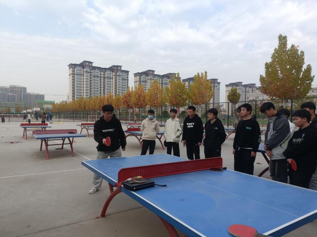 丰富我校乒乓球社同学们的课余生活,传承乒乓文化,发扬国球精神,进一步提高乒兵球技能水平,增强团队合作精神,乒乓球社团于2023年11月28日在二操场举行“挥动青春”冬季乒乓球训练赛。