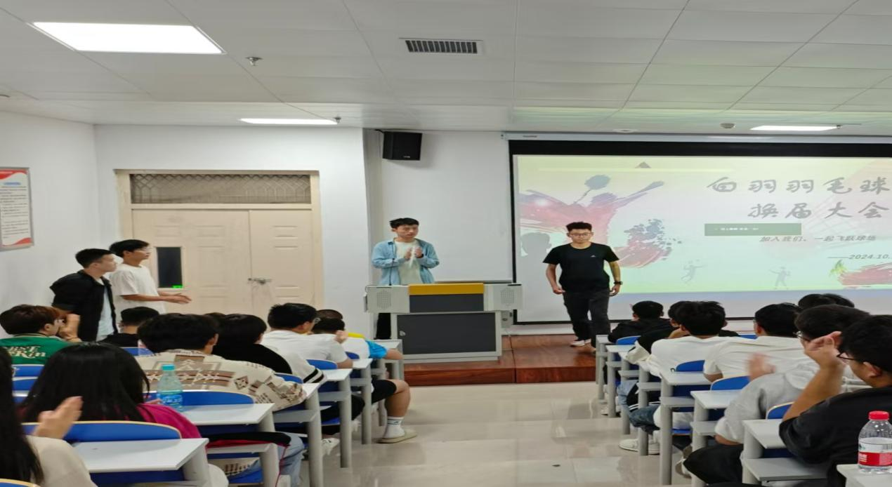 2024年10月14日,白羽毛球社举行换届大会,出席本次大会的有社团指导老师阮振东,羽毛球社23届社长王善融、副社长杨茂科及竞选职位人员等部分老社员以及羽毛球社团24届全体成员参加了本次换届大会。