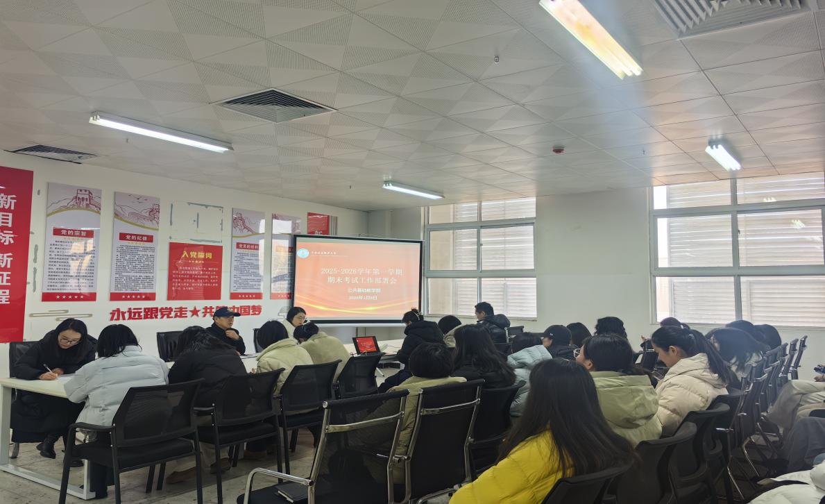 为保障期末教学工作平稳有序推进,规范考试工作开展,1月8日下午16:30,公共基础教学部副主任杨平在图书馆312会议室主持召开期末教学工作会议,全体教师参会。