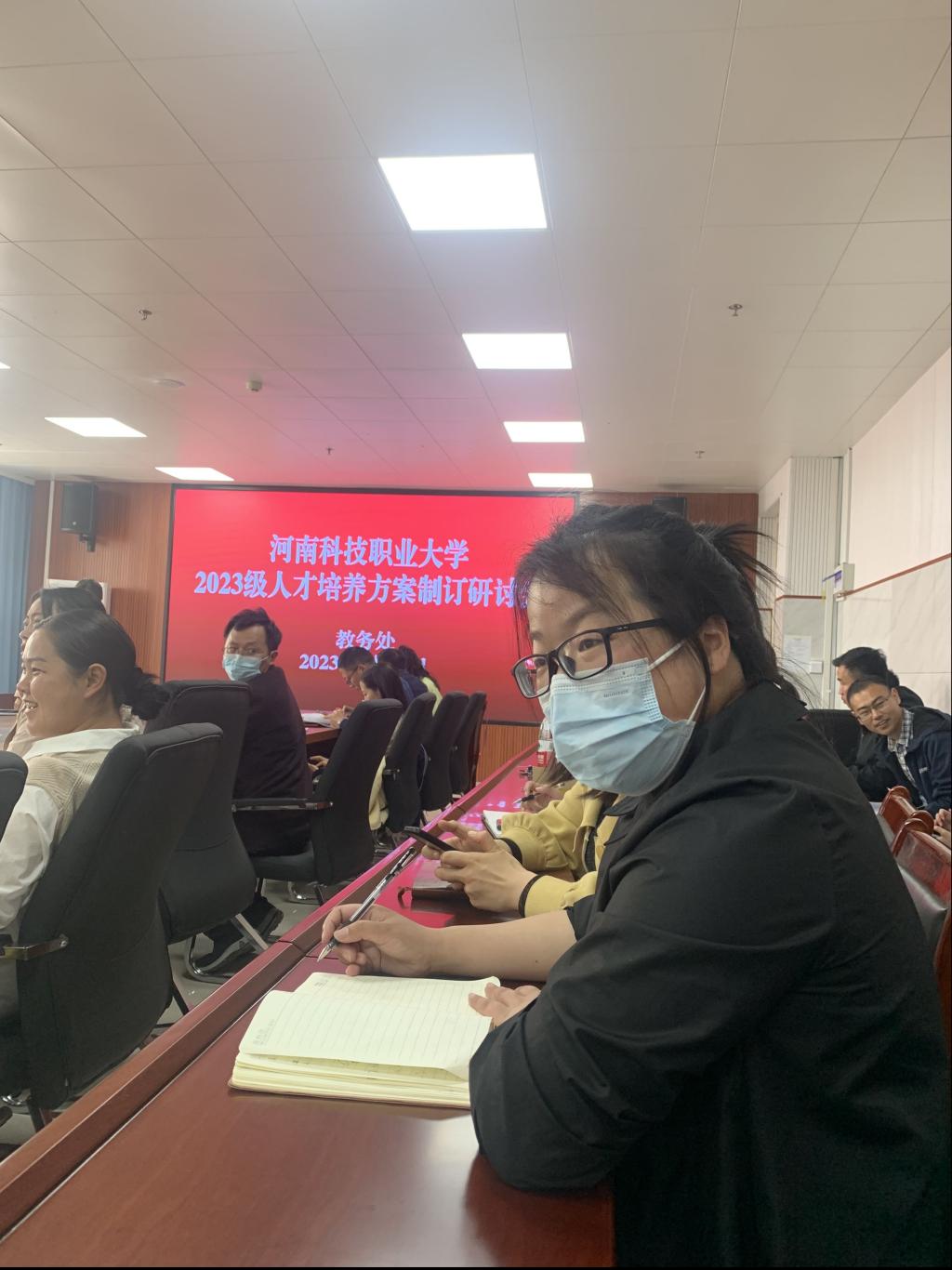 2023年4月11日,学校教务处在新综合教学中心8楼会议室组织了河南科技职业大学2023级人才培养方案制订研讨会,数学教研室主任王芬、刘俊丽及骨干教师李慧慧、严玉芳参加了本次会议,此次会议各学院就新版人才培养方案中公共数学课程内容提出了新的要求。会后,数学教研室于4月13日在图书馆212办公室召开2023版大学数学课程标准制定讨论会。