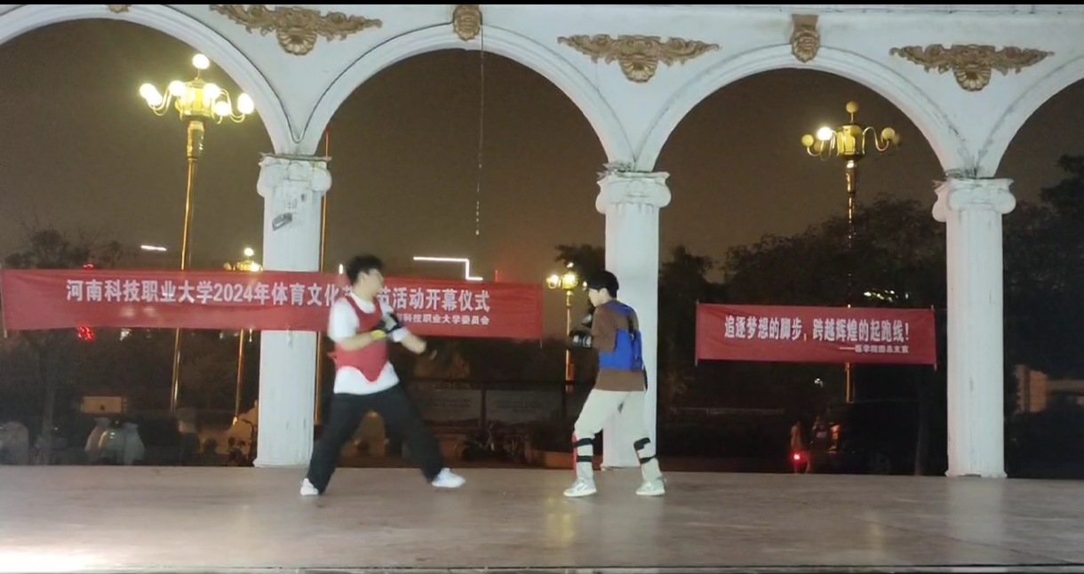 2024 年 11 月 11日晚,河南科技职业大学健身文化节开幕式表演在学校名人广场隆重举行,参与的同学齐聚一堂,共同见证这一体育与文化交融的盛会。开幕式伊始,学校领导在开幕式上发表了热情洋溢的讲话。领导指出,健身文化节是推动校园体育文化建设的重要举措,希望借此契机,让全体师生深刻领悟体育精神,积极参与健身活动,在运动中锤炼意志品质,在汗水中收获健康与快乐,并将这种积极向上的态度融入到学习与生活的方方面面。